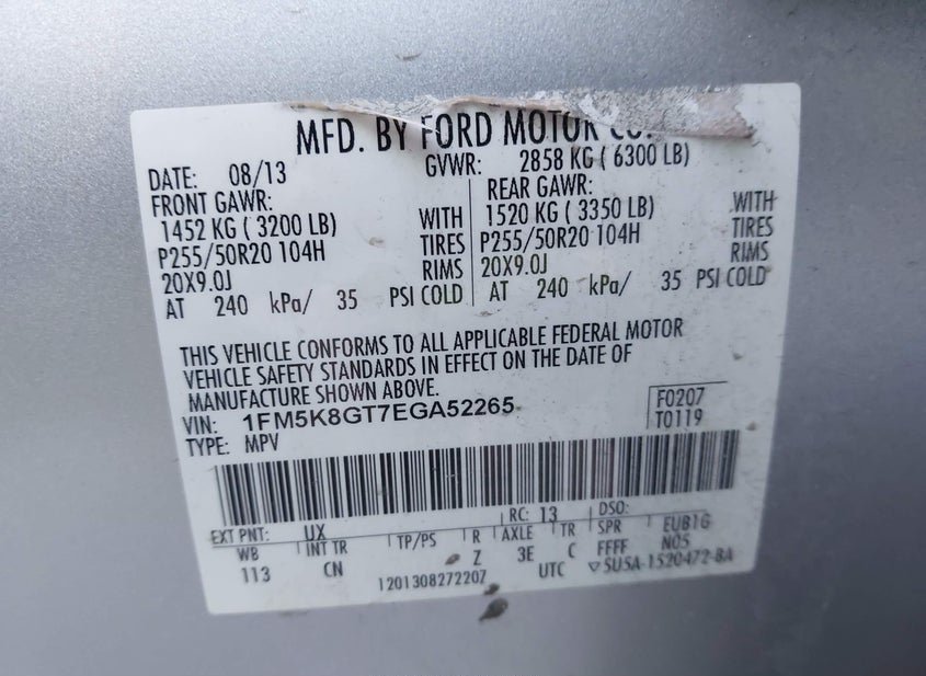 - VIN: 1FM5K8GT7EGA52265
