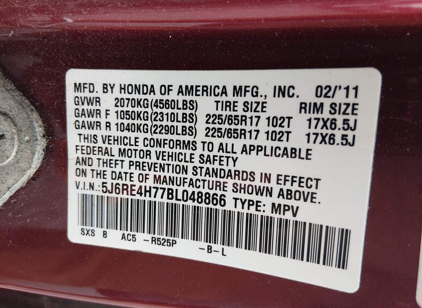 - Название лота: 2011 HONDA CR-V EX-L