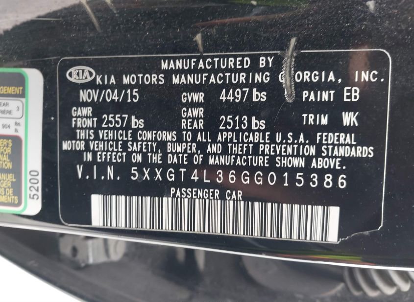 - VIN: 5XXGT4L36GG015386