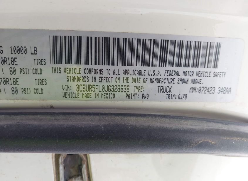 - VIN: 3C6UR5FL0JG328836