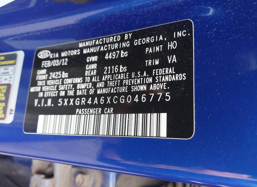 - VIN: 5XXGR4A6XCG046775
