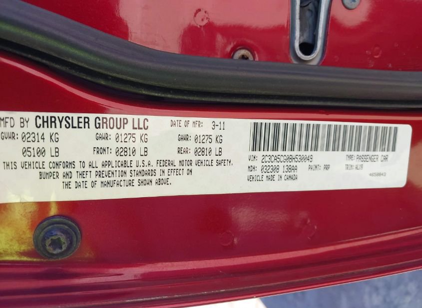 - VIN: 2C3CA5CG0BH530049