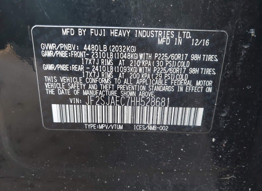 - VIN: JF2SJAEC7HH528681