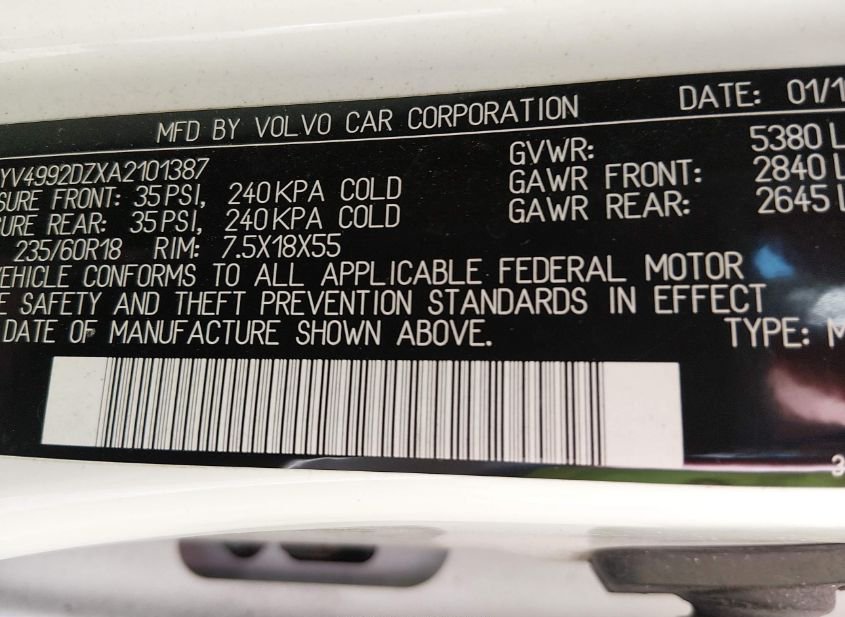 - VIN: YV4992DZXA2101387