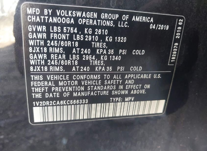 - VIN: 1V2DR2CA6KC566333