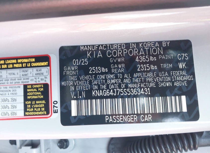 - VIN: KNAG64J75S5363431