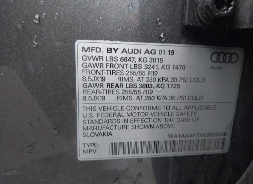 - VIN: WA1AAAF7XKD028339