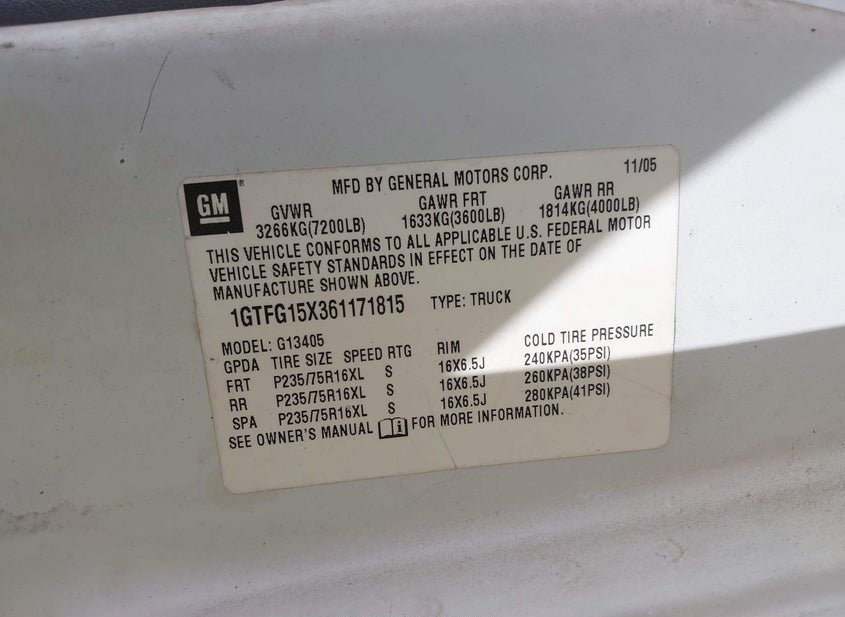 - VIN: 1GTFG15X361171815