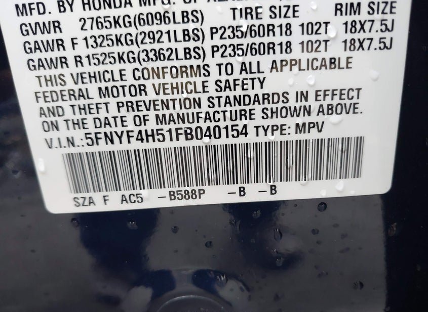 - VIN: 5FNYF4H51FB040154
