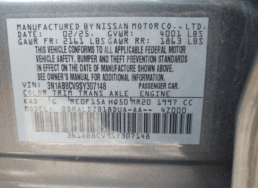 - VIN: 3N1AB8CV9SY307148