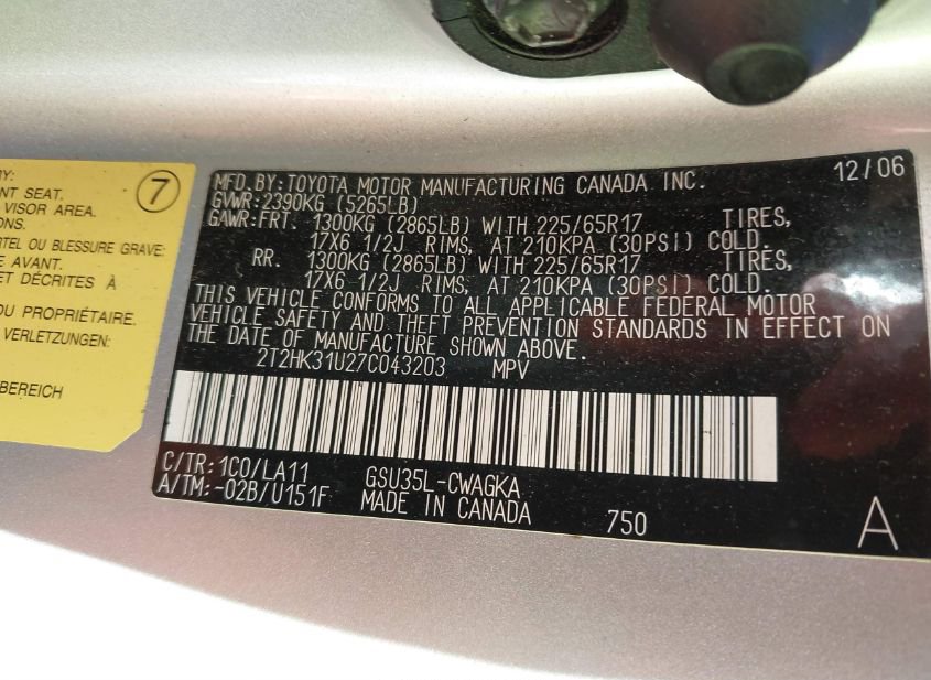 - VIN: 2T2HK31U27C043203
