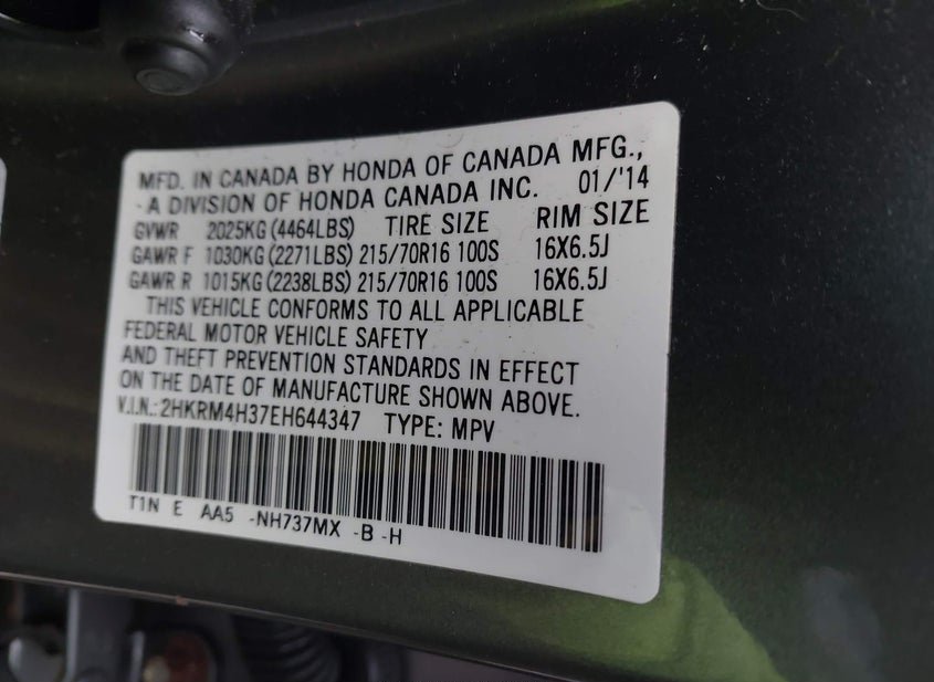 - VIN: 2HKRM4H37EH644347
