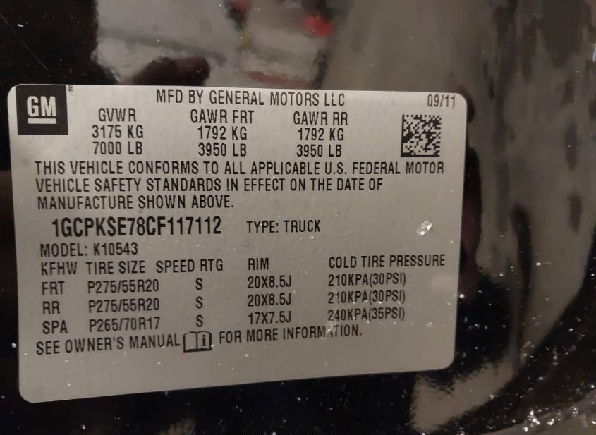 - VIN: 1GCPKSE78CF117112