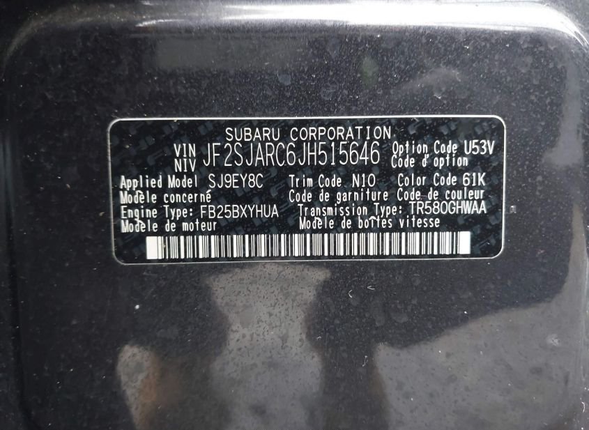 - VIN: JF2SJARC6JH515646