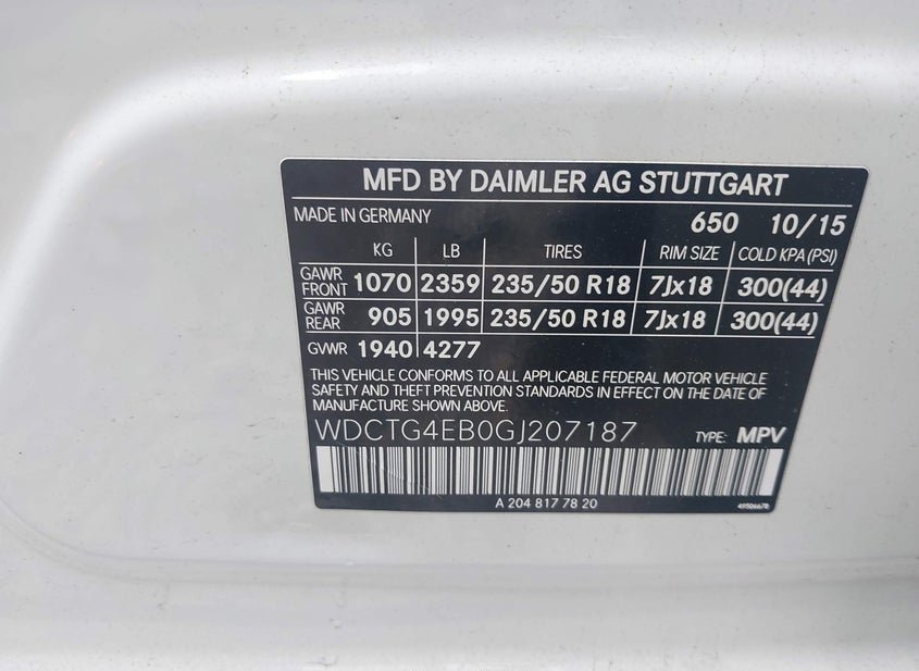 - VIN: WDCTG4EB0GJ207187