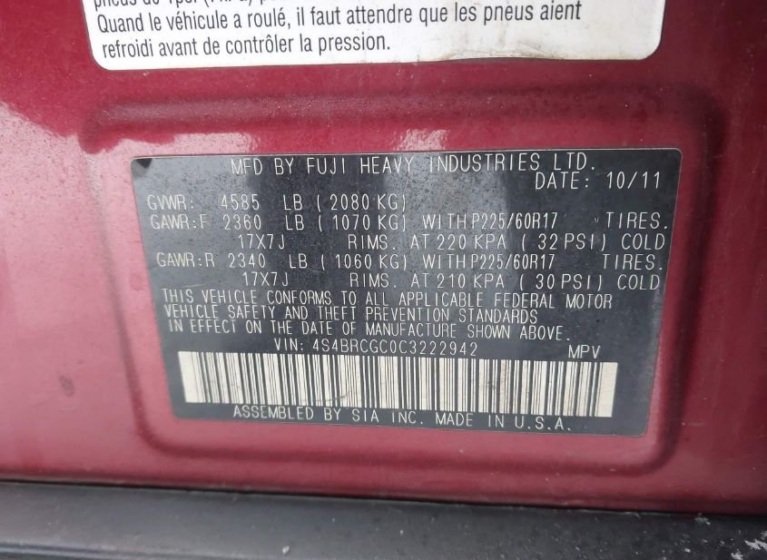 - VIN: 4S4BRCGC0C3222942