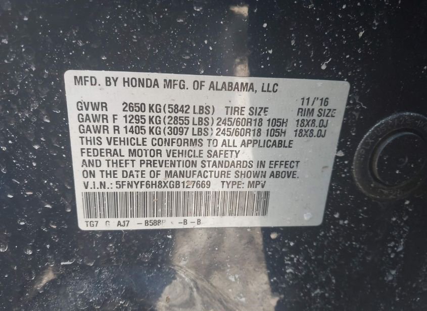 - VIN: 5FNYF6H8XGB127669
