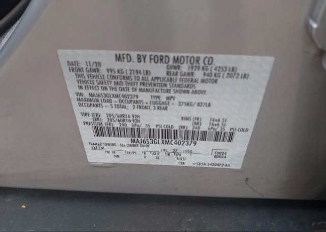 - VIN: MAJ6S3GLXMC402379