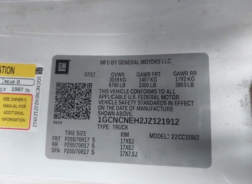 - VIN: 1GCNCNEH2JZ121912