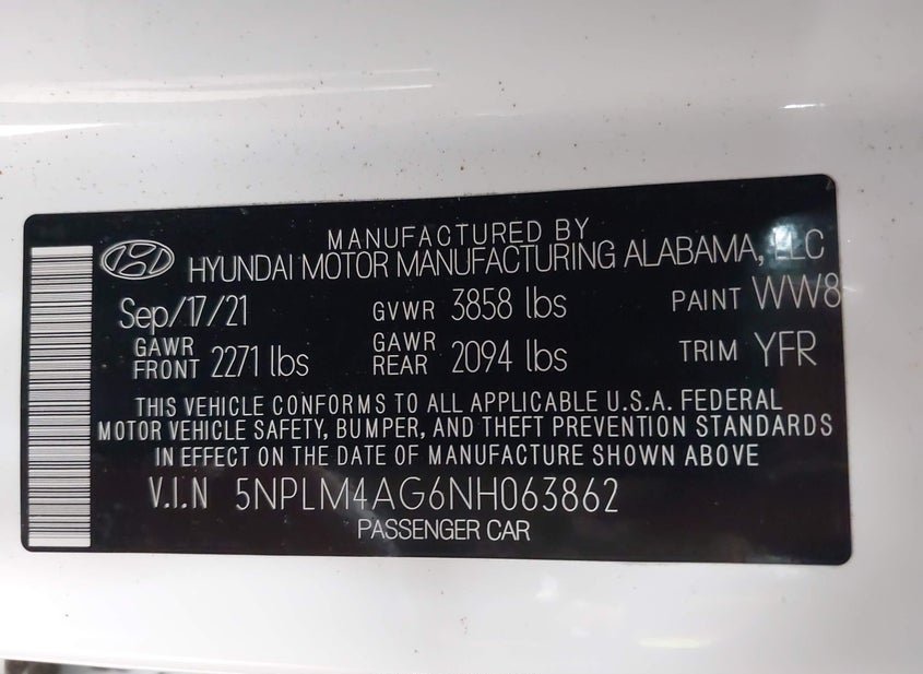 - VIN: 5NPLM4AG6NH063862