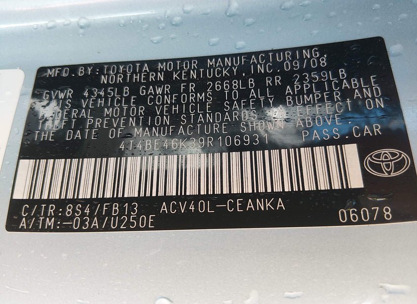 - VIN: 4T4BE46K39R106931