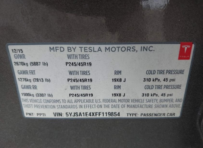 - VIN: 5YJSA1E4XFF119854