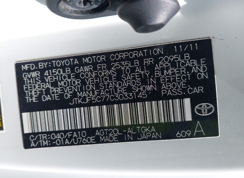 - VIN: JTKJF5C77C3033145