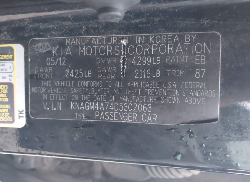 - VIN: KNAGM4A74D5302063