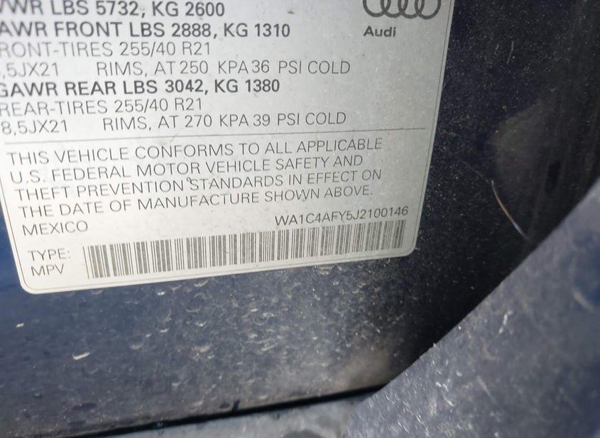 - VIN: WA1C4AFY5J2100146