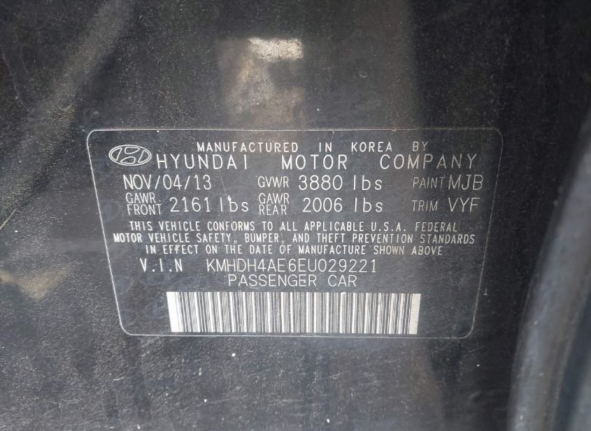 - VIN: KMHDH4AE6EU029221