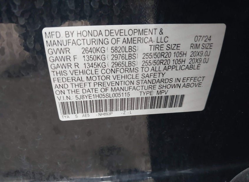 - VIN: 5J8YE1H05SL005115