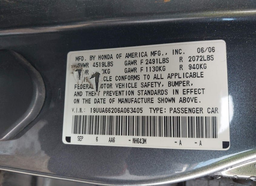 - VIN: 19UUA66206A063405