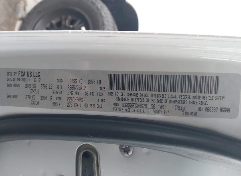 - VIN: 1C6RR6FG0HS791156