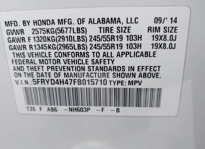 - VIN: 5FRYD4H47FB015710