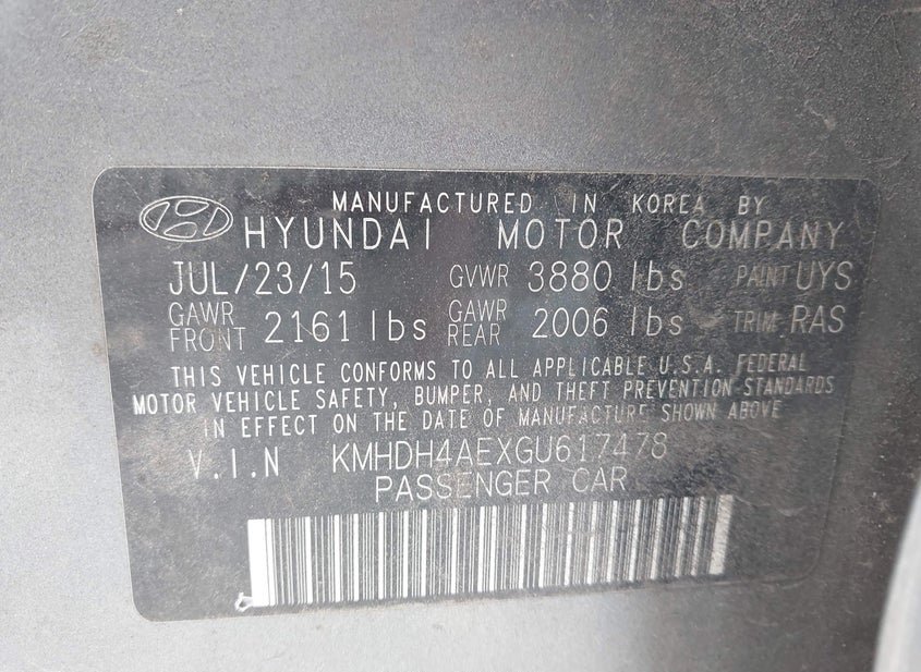 - VIN: KMHDH4AEXGU617478