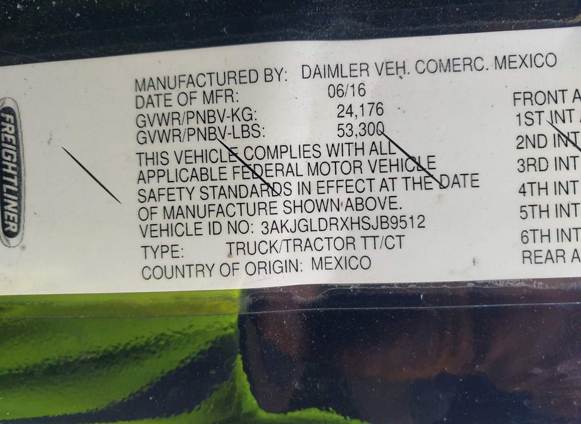 - VIN: 3AKJGLDRXHSJB9512