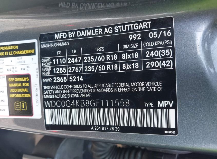 - VIN: WDC0G4KB8GF111558