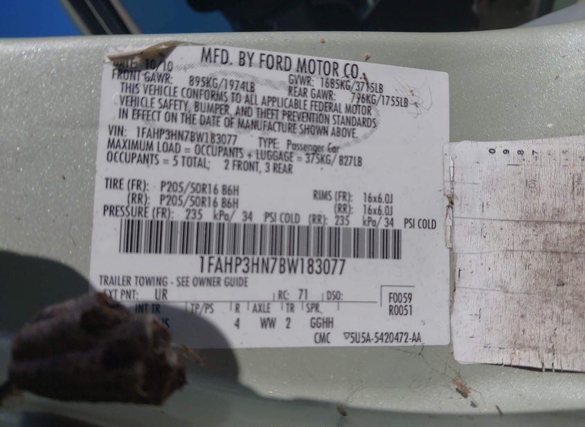 - VIN: 1FAHP3HN7BW183077