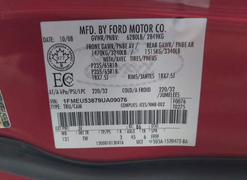 - VIN: 1FMEU53879UA09076