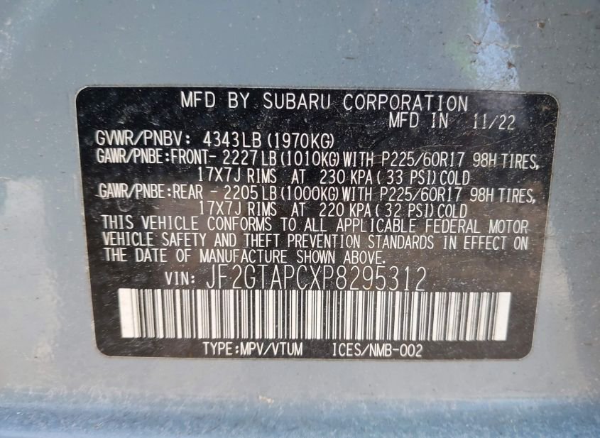 - VIN: JF2GTAPCXP8295312