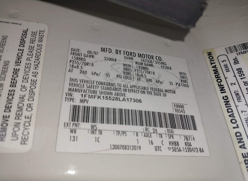 - VIN: 1FMFK15528LA17306