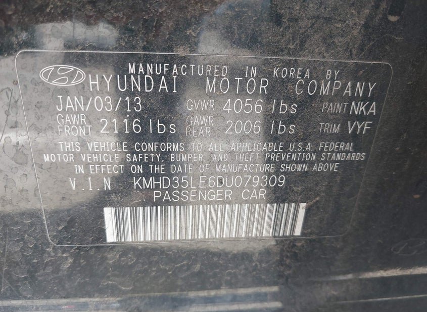 - VIN: KMHD35LE6DU079309