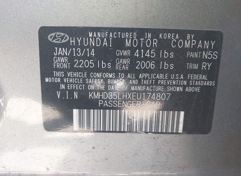 - VIN: KMHD35LHXEU174807