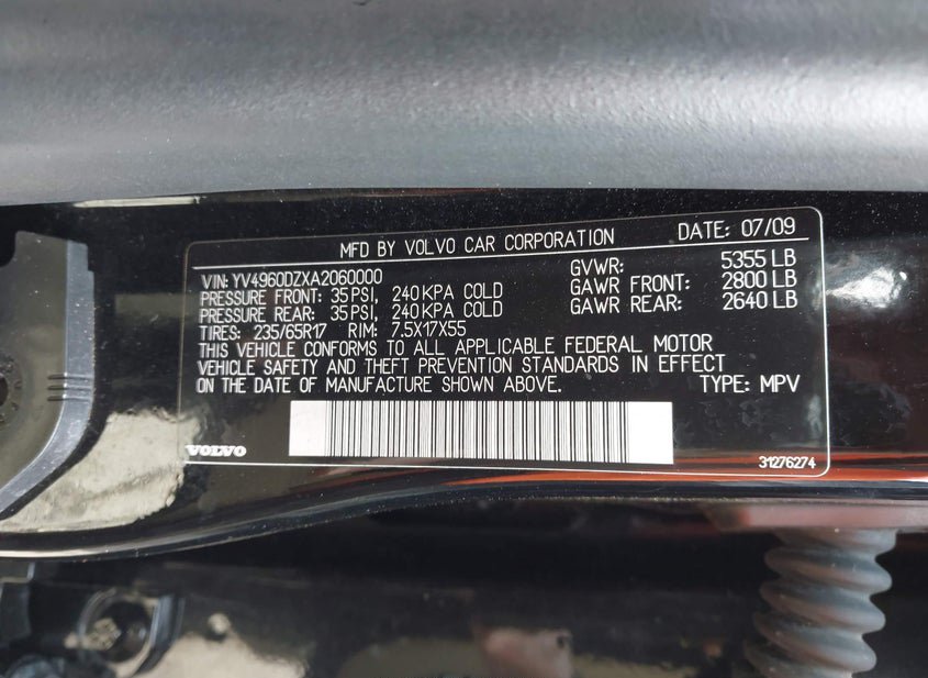 - VIN: YV4960DZXA2060000