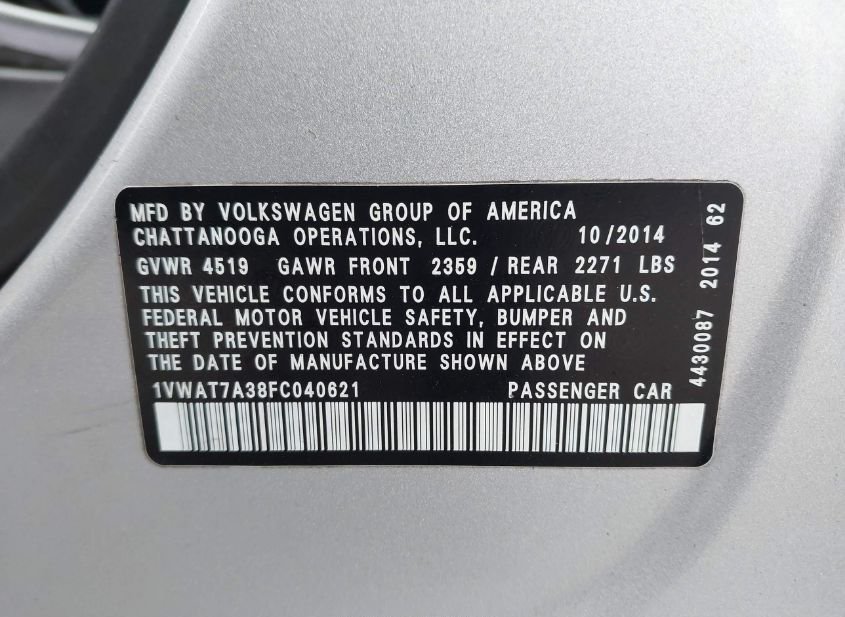 - VIN: 1VWAT7A38FC040621