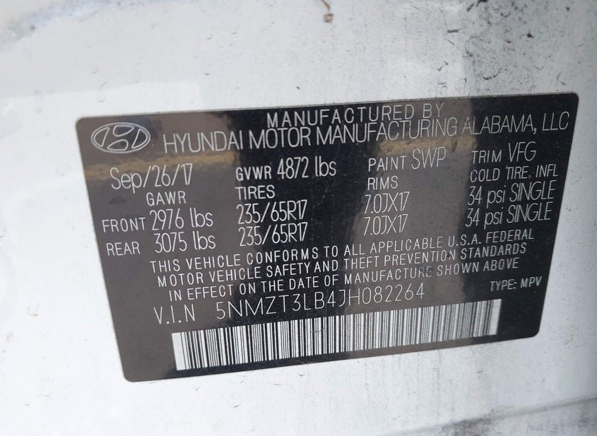 - VIN: 5NMZT3LB4JH082264