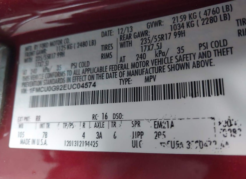 - VIN: 1FMCU0G92EUC04574