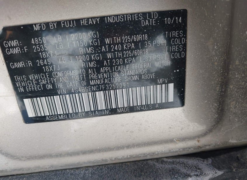 - VIN: 4S4BSENC7F3252091