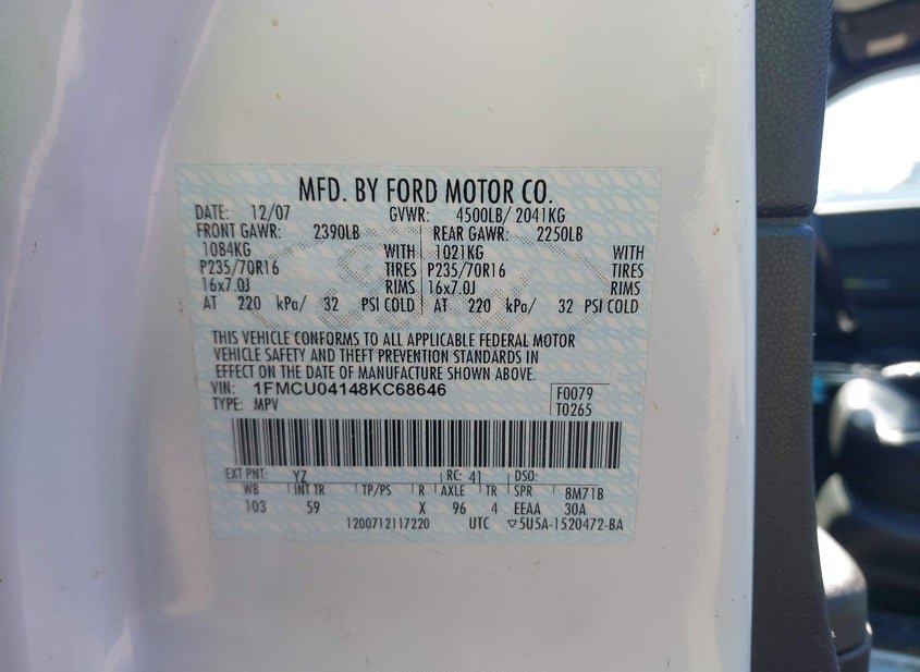 - VIN: 1FMCU04148KC68646