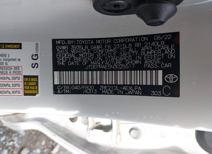 - VIN: JTDEPMAE5N3025517